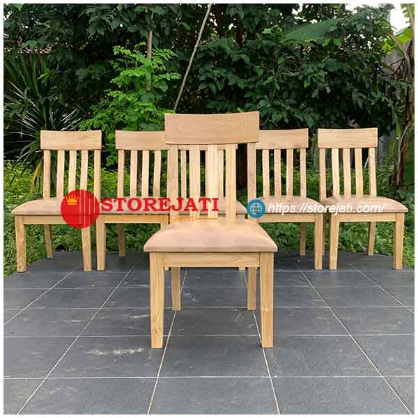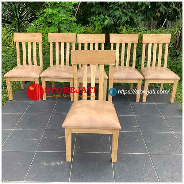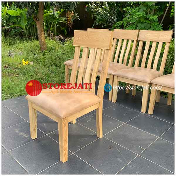 Kursi makan minimalis jati bersantap dalam gaya elegan hadir untuk menghadirkan keindahan tradisional yang pasti akan menjadi daya tarik sendiri di ruangan rumah anda. dudukan dan sandaran terdapat spon busa royal foam LJ 26 berteksture kenyal, tidak mudah kempes, dan empuk yang di bungkus dengan kain polyester yang kasual menampilkan tampilan yang elegan dan modern. sandaran berbentuk oval yang menarik menambah kemegahan dan keindahan klasik, bagian belakang yang agak miring menawarkan tempat duduk yang nyaman. terbuat dari kayu pilihan yang memiliki daya tahan bertahun-tahun, awet serta kokoh di tambah dengan konstruksi kerangka pengerjaan detail sistem kuno yang menggunakan lem poxy campuran, purus, sikon dan sekrup menambah daya tahan dan keawetan untuk di gunakan sehari-hari. produk furniture jepara mewah kayu ukuran kursi makan minimalis terbaru modern panjang 50 cm dan lebar 55 cm memiliki warna finishing bleach dengan menampakkan urat serat kayu sehingga terlihat eksotis dan nyentrik buat mengisi perabot mebel di ruang rumah modern anda.