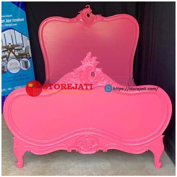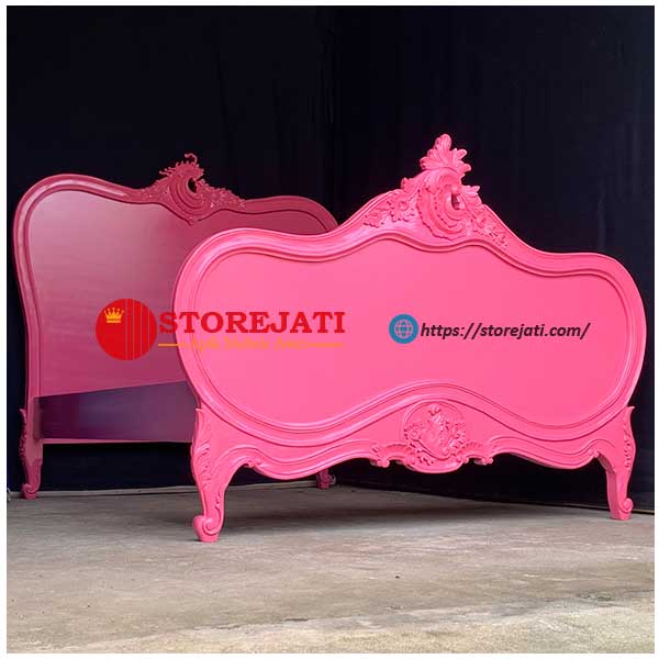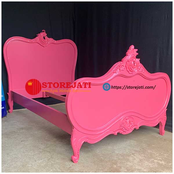 Tempat tidur anak warna pink ala princess desain ukir mewah untuk ruang kamar putri cantik anda. dengan motif ukiran yang khas di pahat dengan tenaga reampil oleh pengrajin yang ahli di bidang seni pahat menghasilkan seni pahat ukir yang halus dan rapi menjadikan produk furniture bernilai seni tinggi. terbuat dari bahan baku kayu mahoni oven, proses oven kayu membutuhkan waktu 12 hari agar kekeringan kayu mencapai 12 standart kualitas eksport. menciptakan kamar yang bergaya sangatlah penting dan perlu perhatian khusus apalagi untuk ruang kamar gadis kecil. maka dari itu kami memproduksi furniture untuk melengkapi perabot interior ruang kamar putri anda seperti produk furniture ukir mewah kamar warna pink muda dan tua tempat tidur buat anak perempuan remaja yang paling bagus memiliki gaya yang sesuai dengan putri kecil anda. konstruksi yang kuat, aman dan nyaman di gunakan serta dekoratif untuk melengkapi kebutuhan furniture buat putri anda. semua rangkaian produk yang indah dibuat dengan tangan dari kayu mahoni solid yang menampilkan detail rumit dan lekukan elegan yang terinspirasi oleh desain furniture prancis. koleksi furniture cantik ini menampilkan desain dengan sandaran kepala blok kayu serta ukiran tangan yang penuh hiasan, yang semuanya menambahkan sentuhan anggun yang indah pada pengaturan kamar putri anda.